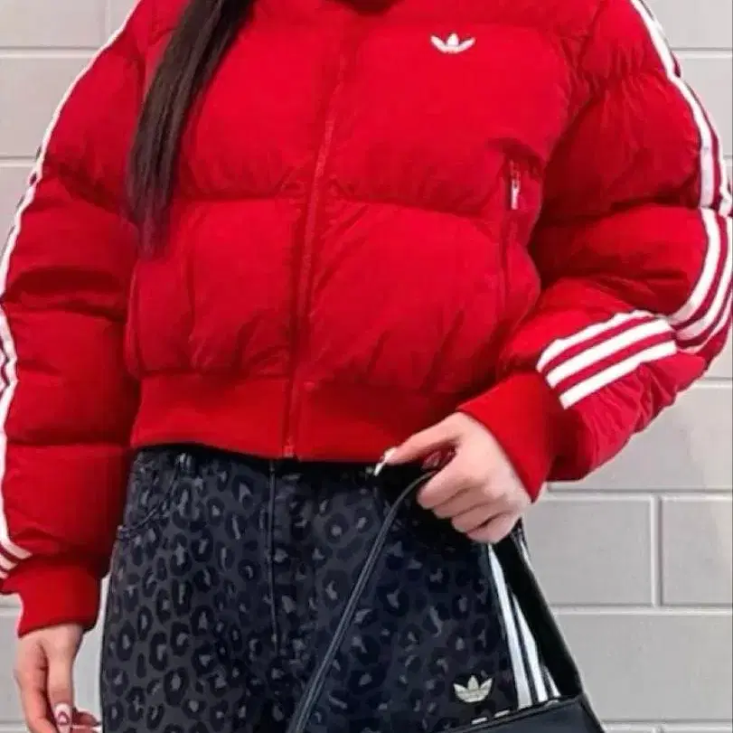 새상품 택 포함 adidas 크롭 기장 다운 레드