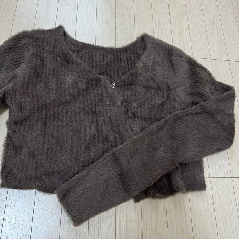 아크릴 100% 브라운 크롭 스웨터, 지퍼 디자인으로 스타일리시. - 색상: 브라운 - 소재: 아크릴 100% - 스타일: 크롭 - 디자인: 지퍼 포함 - 소매: 긴팔 방문해 주셔서 감사합니다. 사이즈 - M