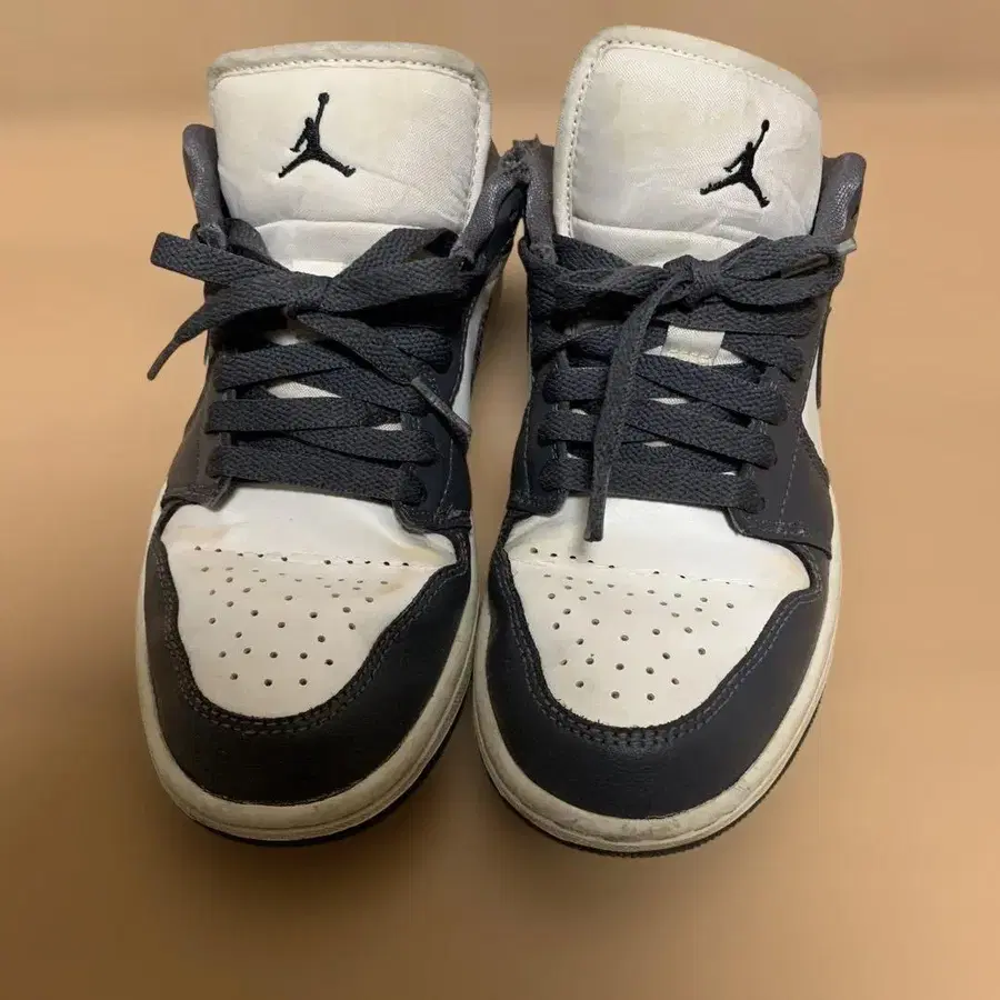 화이트와 그레이 색상의 가죽 스니커즈, 엠보싱 가공 로고 포함. - 브랜드: Jordan - 색상: 화이트/그레이 - 스타일: 스니커즈 - 디자인: 엠보싱 가공 로고 - 소재: 가죽 방문해 주셔서 감사합니다.