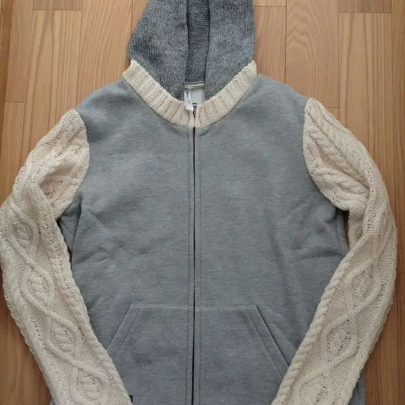 그레이 후드 부착 집업 후드티 LL