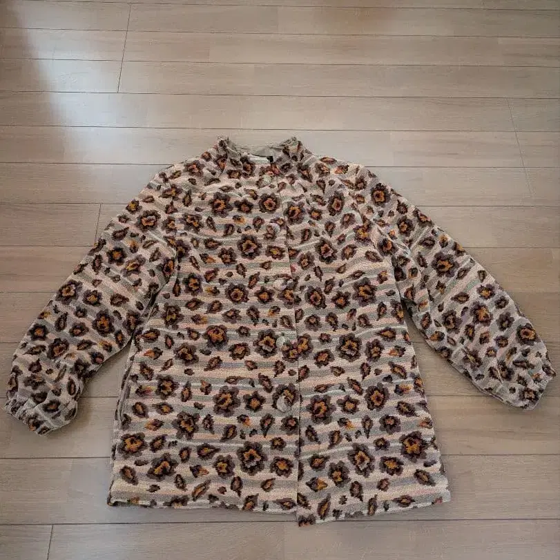 봐주셔서 감사합니다. 페이의 룸웨어입니다. 소매 끝에 밴딩이 있어 편안합니다. 포켓이 2개 있습니다. 안감이 있어 따뜻합니다. 사이즈 어깨 너비 46 가슴 너비 54 기장 75 소매 길이 59 레오파드 무늬