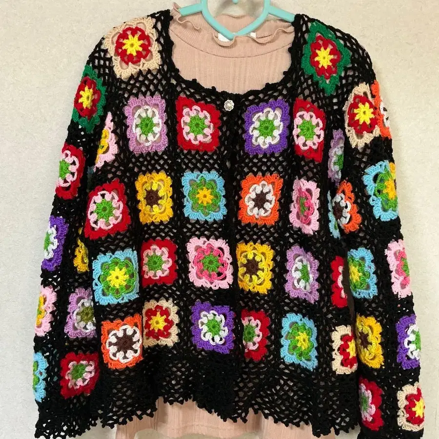 꽃 모티브 걸리시 페미닌 손뜨개질 가디건