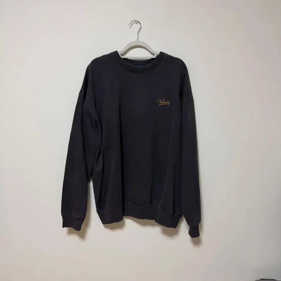 프론트에 Kebez 자수, 백에 1986년 로고 프린트가 들어간 그레이 맨투맨입니다.