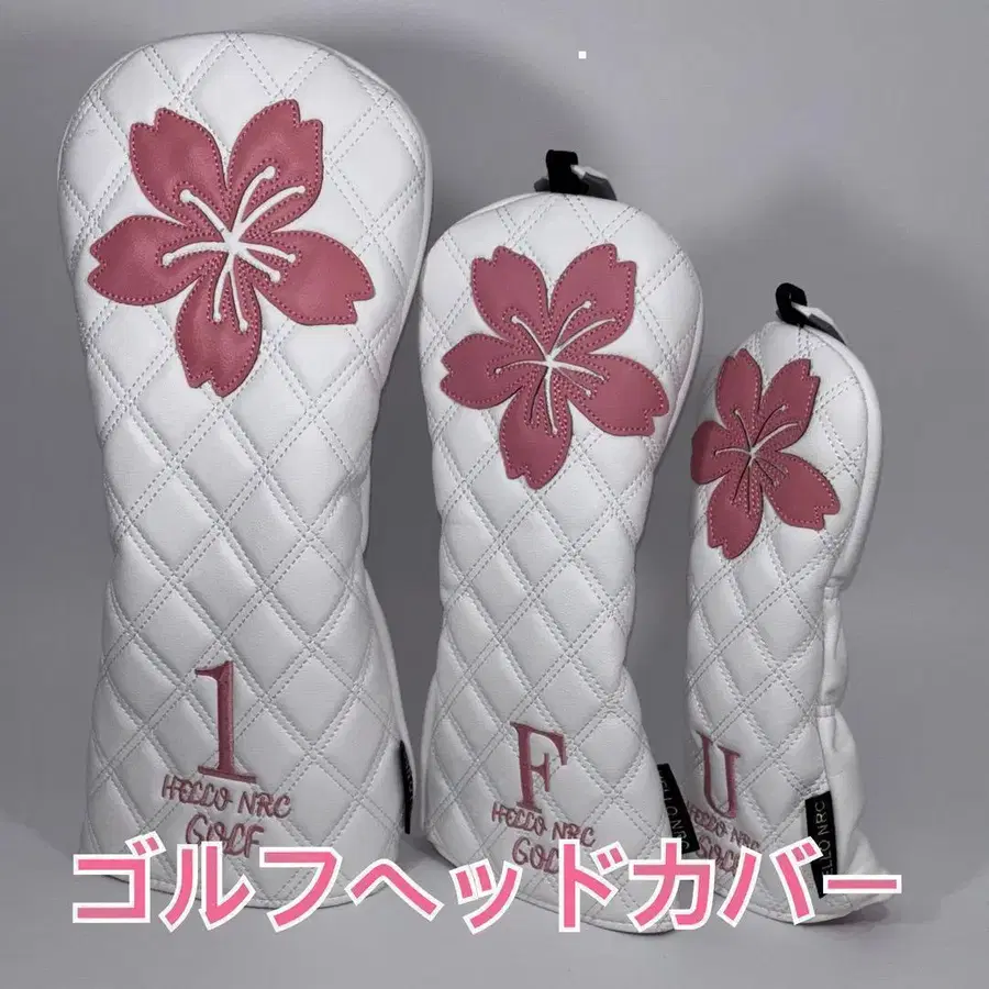 벚꽃 디자인의 화이트와 핑크 골프 헤드커버, 1번 우드용, 페어웨이 우드용, 유틸리티용 세트.