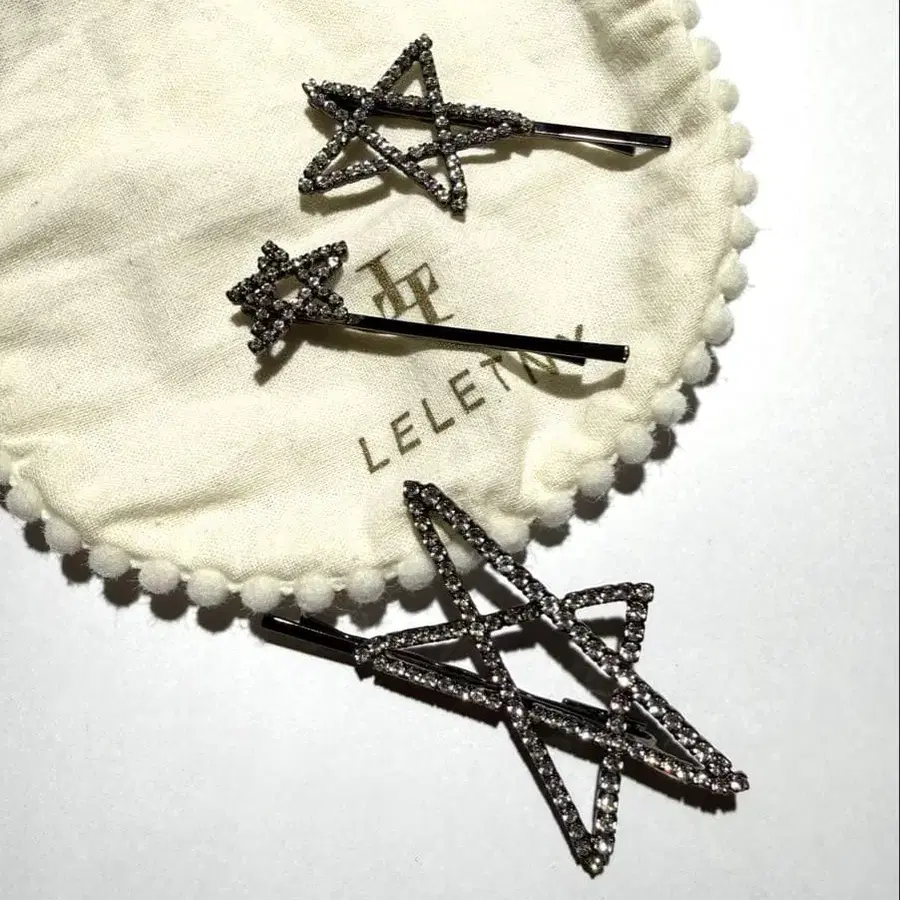 lelet ny의 크리스탈 스타 헤어핀입니다. 3개 1세트였으므로, 그 1세트를 판매합니다. 금속 부분의 색상은 건메탈입니다. 시착 정도의 사용입니다. 사진의 파우치만 동봉해 드립니다. 중고품에 이해가 있으시고, 사소한 것을 신경 쓰지 않으시는 분, 잘 부탁드립니다.