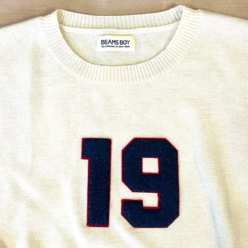 넘버 19 자수가 특징인 아이보리 색상의 크루넥 니트. - 브랜드: BEAMS BOY - 색상: 아이보리 - 디자인: 넘버 19 자수 - 스타일: 크루넥 - 소재: 니트 방문해 주셔서 감사합니다. 사이즈 - S