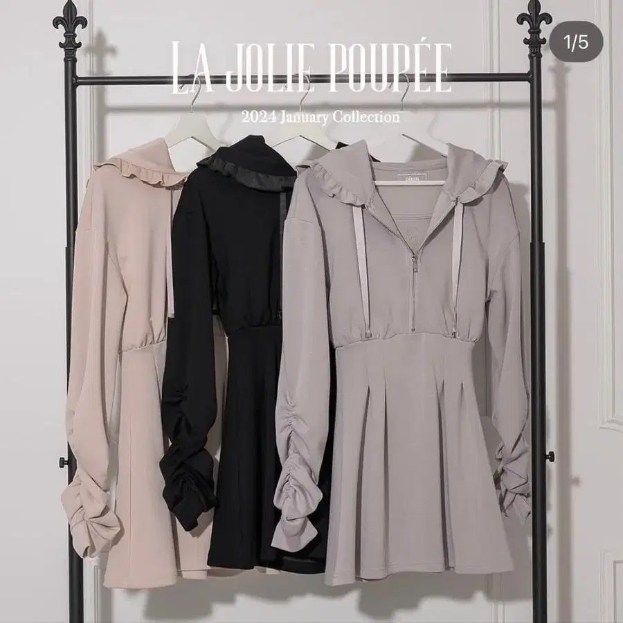 pium 그레이 카라 부착 리본 긴팔 원피스