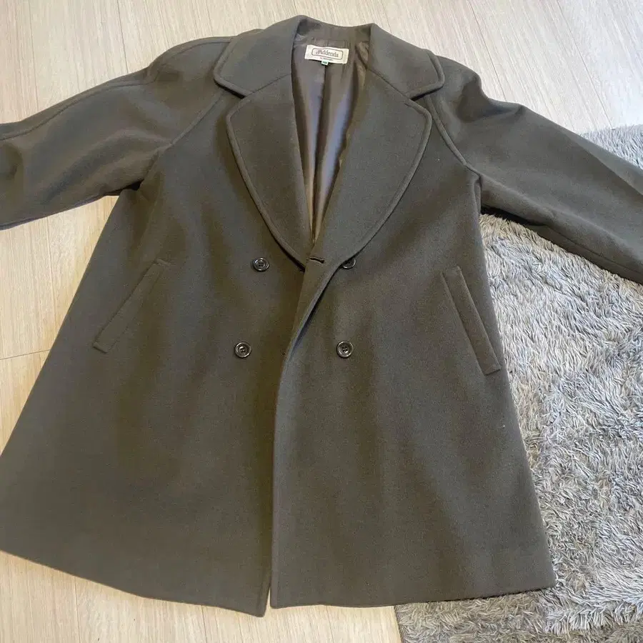 올리브 그린 더블 브레스트 울 코트