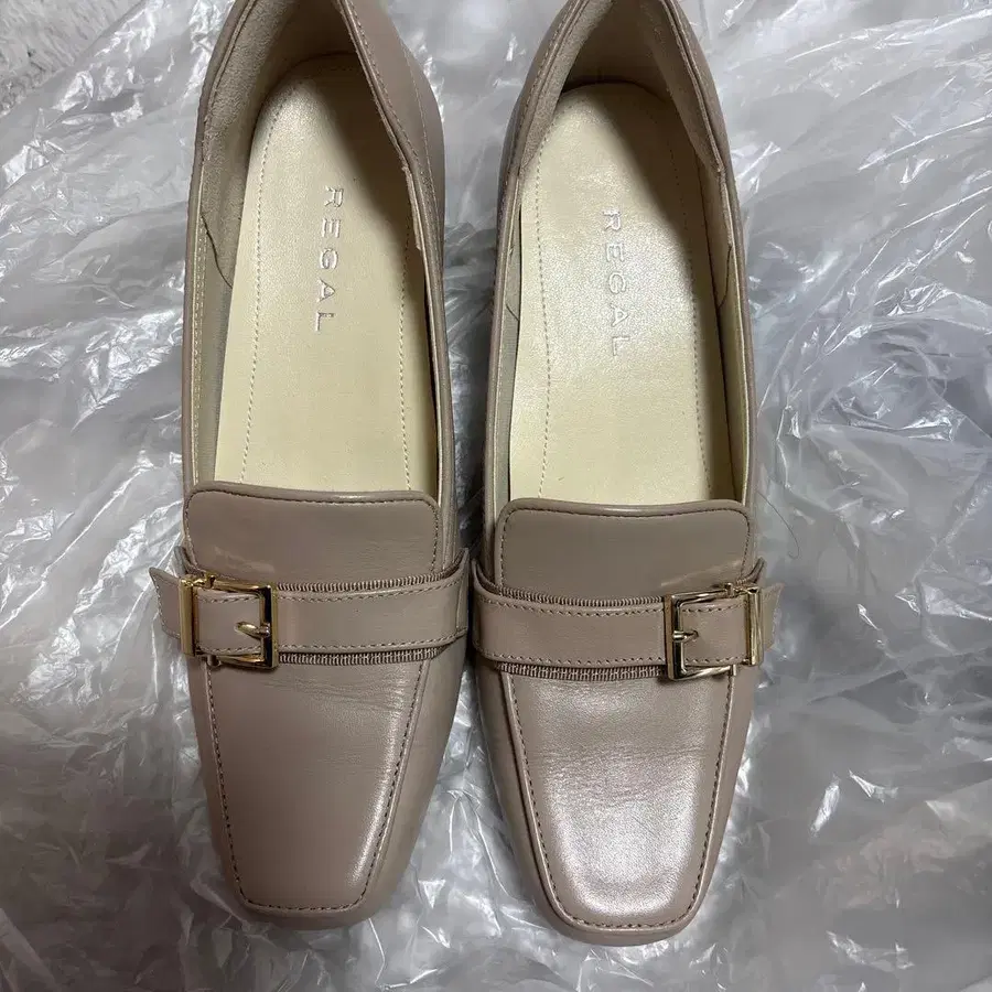 버클 디자인의 베이지 로퍼, 힐 약 5cm로 스타일리시. - 브랜드: REGAL - 색상: 베이지 - 굽 높이: 약 5cm - 디자인: 버클 장식 로퍼 - 소재: 합성 피혁 방문해 주셔서 감사합니다. 사이즈 - 22.5cm