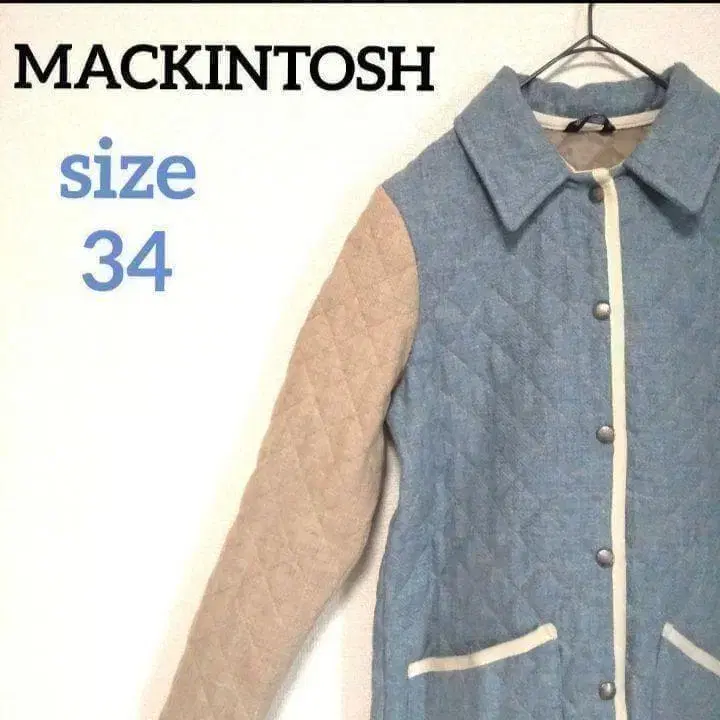 매킨토시 바이컬러 퀼팅 자켓 소매 절개 다이아 퀼트 스카이블루