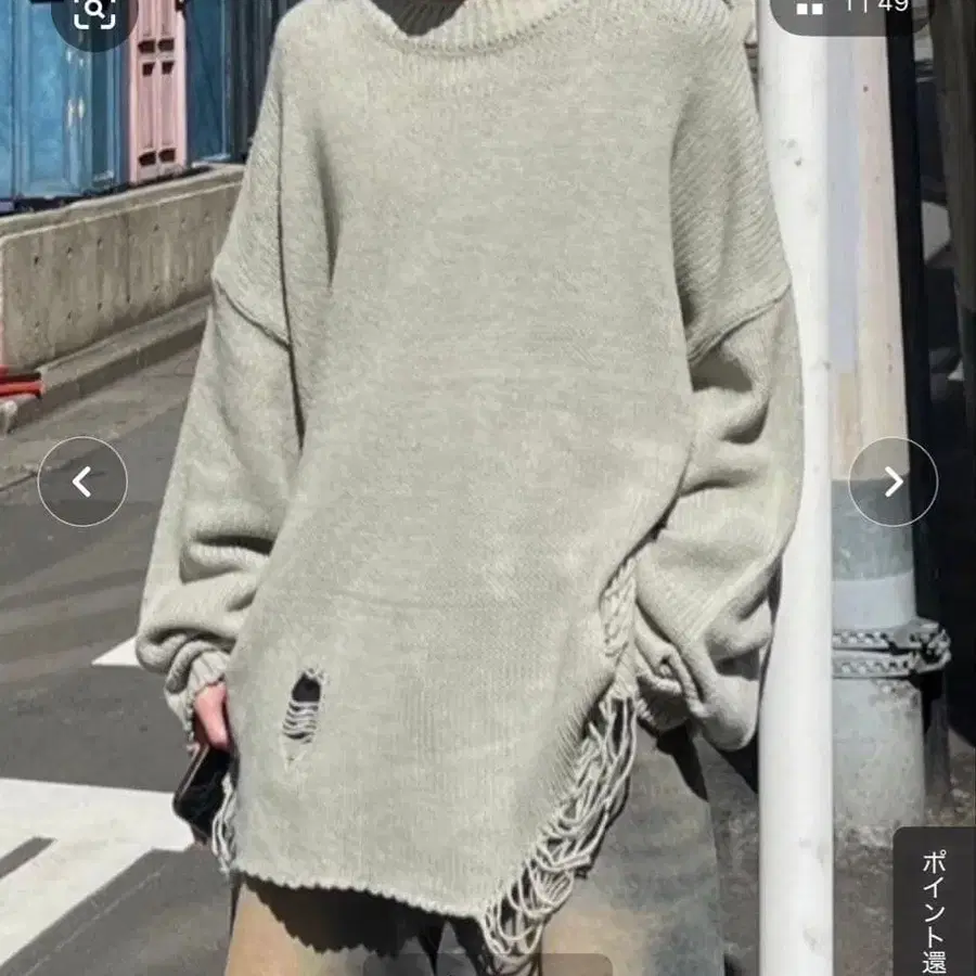 [치카시츠플러스] 오버 사이즈 데미지 긴팔 니트 로우게이지 니트