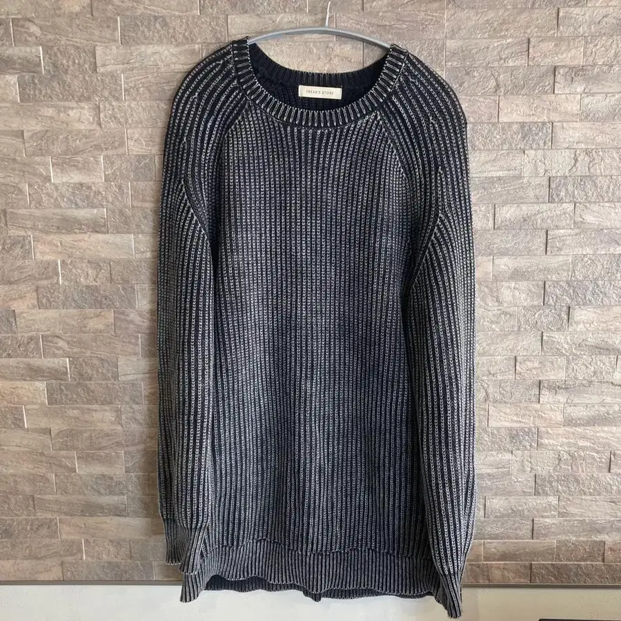 다크 그레이와 블랙 색상의 리브 니트 오버사이즈 스웨터입니다.