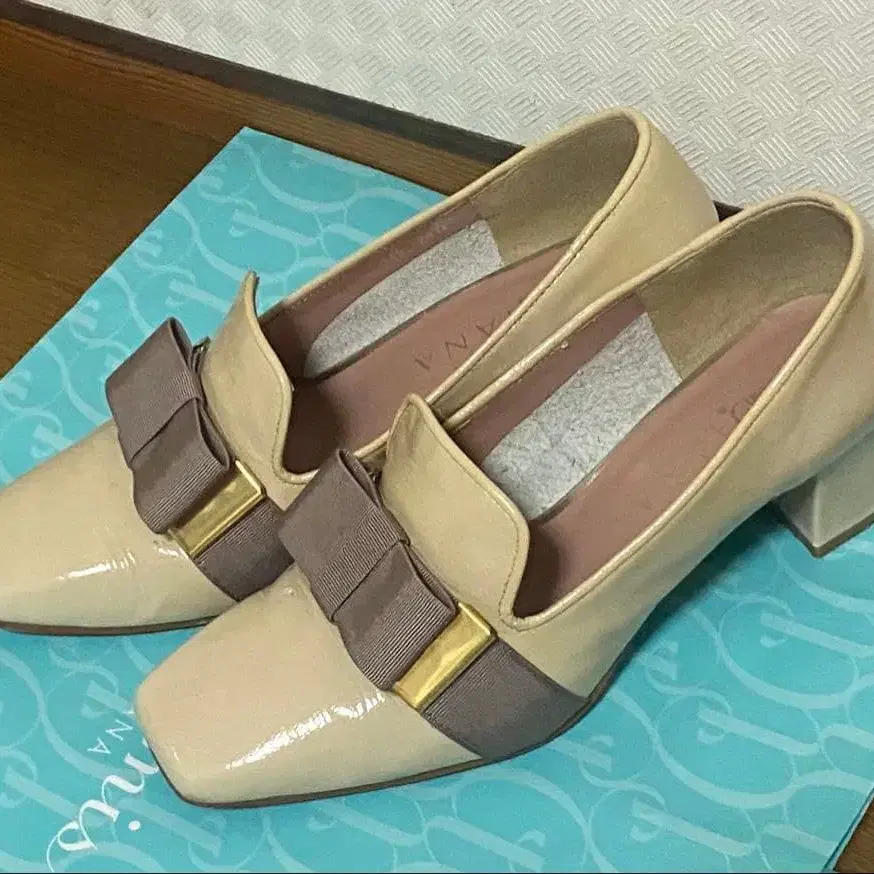 다이애나의 리본 포함 에나멜 로퍼입니다. 리본 아래에 금장 장식이 달려 있어 귀엽습니다. 신었던 제품이므로 신경 쓰이지 않는 분 부탁드립니다 ♡