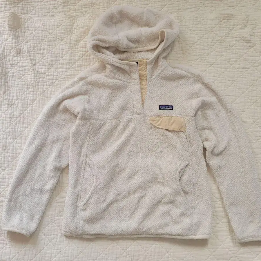 후드 부착 화이트 플리스 자켓, 가슴 포켓 부착으로 기능적입니다. - 브랜드: Patagonia - 색상: 화이트 - 디자인: 후드 부착 풀오버 - 포켓: 가슴 포켓 부착 방문해 주셔서 감사합니다.