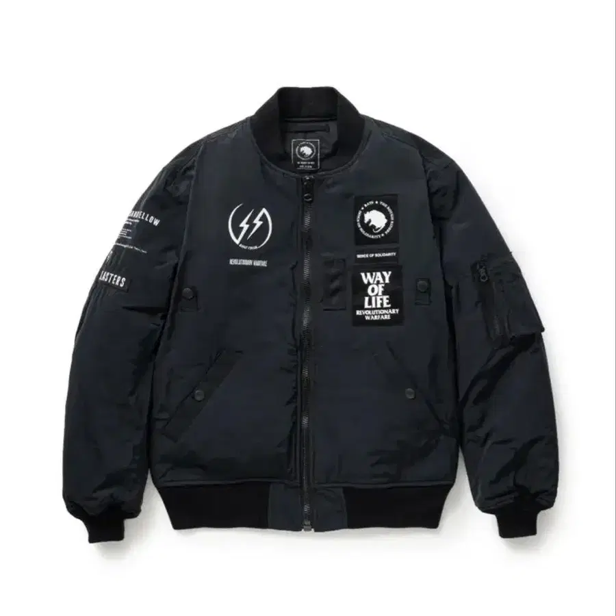 매트한 질감, 발수성이 뛰어난 오리지널 폴리에스테르 원단을 사용한 MA-1 자켓. 기장을 약간 길게 설계하는 등 실루엣은 현대적이면서도, 충전솜을 채우고 안감에 두께감을 더해 적당한 볼륨감과 높은 보온성을 느낄 수 있는 마감으로 완성했습니다. 몸통 안쪽에 슬래시 포켓, 포켓 안감에는 코듀로이를 사용했습니다. 왼쪽 가슴에 와펜, 오른쪽 가슴에 3D 자수, 오른쪽 어깨에 프린트 나일론 테이프를 더한, 임팩트 있는 디자인. 레귤러 핏 실루엣.