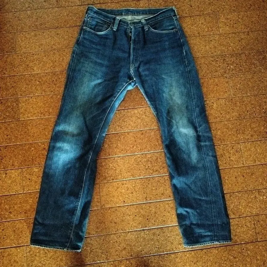 브랜드 FULLCOUNT 사이즈 W31 실측치수는 이미지를 참조해 주세요. 밑단에 약간의 찢김. 기타, 올풀림, 찢김, 수선 흔적 없이 색상도 잘 남아있는 상태입니다. 수염 부분과 무릎 안쪽에 얇게 풀칠이 되어 있습니다.