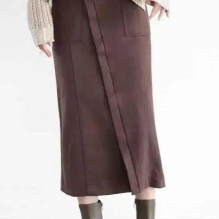 사선으로 절개된 랩 스타일 디자인이 포인트인 디자인 스커트입니다.