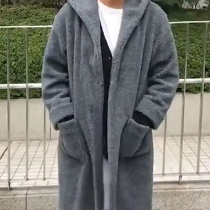 • 그레이 후드 부착 코트