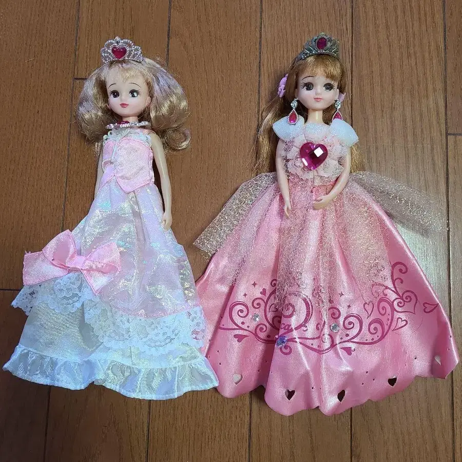 하트 티아라와 화려한 드레스를 착용한 리카짱 인형 2체 세트. - 인형 의상: 2체의 인형이 다른 의상을 착용 - 색상: 핑크와 화이트 - 부속품: 티아라 포함 - 디자인: 하트와 꽃 무늬가 장식된 드레스 - 인형 헤어스타일: 컬이 있는 금발 방문해 주셔서 감사합니다.