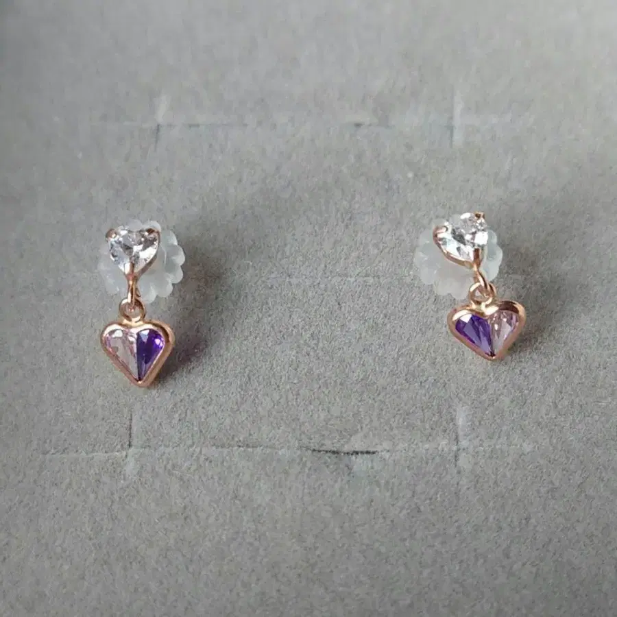 츠츠미 바이컬러 지르코니아 하트 귀걸이 K10 퍼플 계열 바이컬러 하트와 클리어 하트가 귀여운 귀걸이입니다. 큐빅 지르코니아의 반짝임이 멋집니다. 각인 있음 [ K10 ] 부속품: 수지 캐치만 패킷 포스트 미니로 발송 예정입니다.