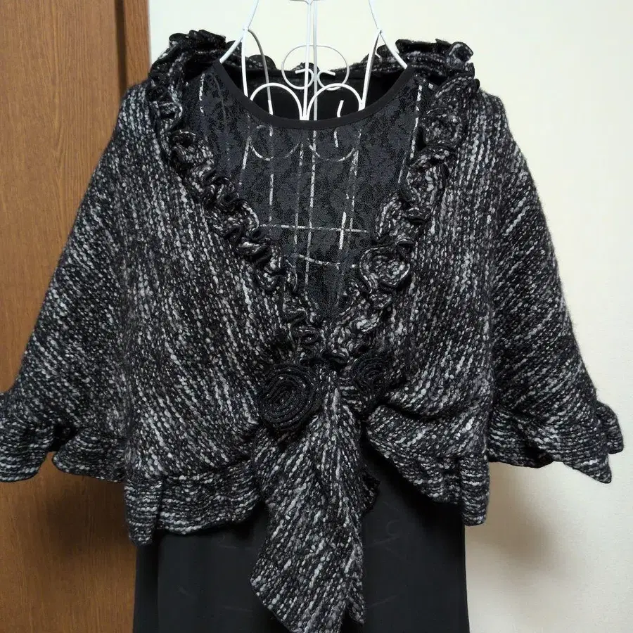 프릴과 꽃 모티브가 특징인 블랙과 화이트 니트 가디건. - 색상: 블랙과 화이트 혼합 - 디자인: 프릴 포함, 꽃 모티브 있음 - 스타일: 숏 기장, 오픈 프론트 - 소재: 니트 느낌, 부드러운 질감 방문해 주셔서 감사합니다.