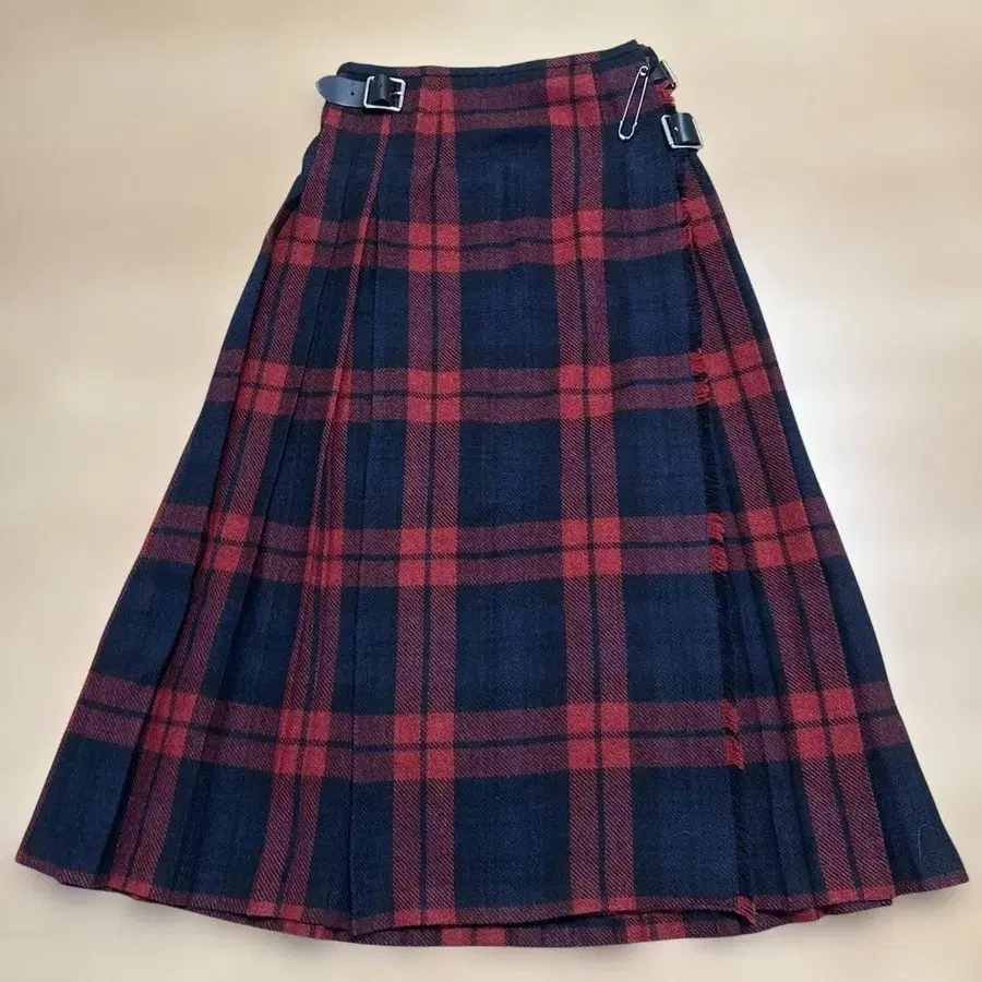 새상품급 GLEN NEVIS 타탄 체크 롱 플리츠 랩스커트 L