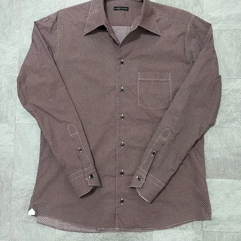 자동 번역되었어요. 원문보기빨간색, 화이트, 블랙 색상의 코몬 무늬 긴팔 셔츠, 가슴 포켓 부착.
