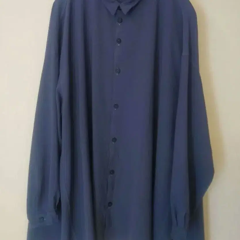 다크 블루 버튼 업 긴팔 셔츠, 스탠드 카라와 백 플레어가 특징 - 색상: 다크 블루 - 스타일: 버튼 업 셔츠 - 소매 길이: 긴팔 - 옷깃 스타일: 스탠드 카라 - 사이즈: XS이지만 오버 사이즈로 나왔습니다. 방문해 주셔서 감사합니다. 착용 횟수 적고, 새상품급입니다.