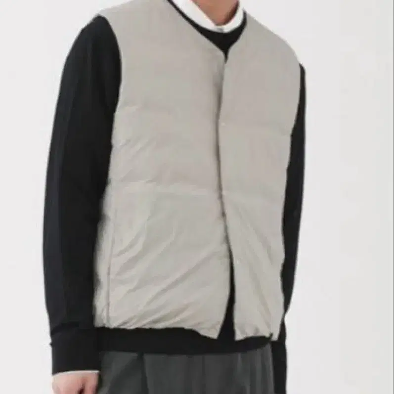 무인 신사 경량 다운 포켓 부착 노카라 베스트 라이트 그레이
