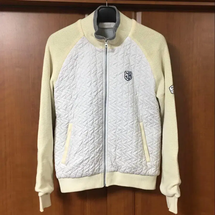 바디 프론트에는 얇게 충전솜이 들어간 퀼팅 소재, 암, 등 부분은 니트를 채용한 아우터입니다.