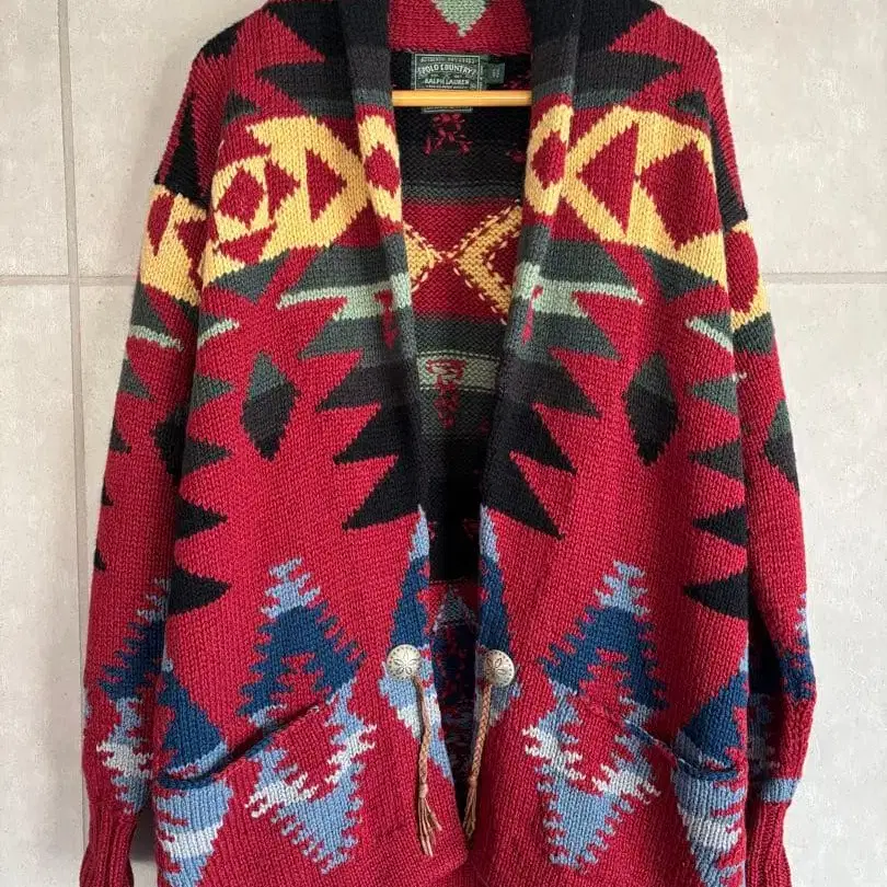 랄프 로렌 아메리카 원주민 모티브 롱 가디건 xs