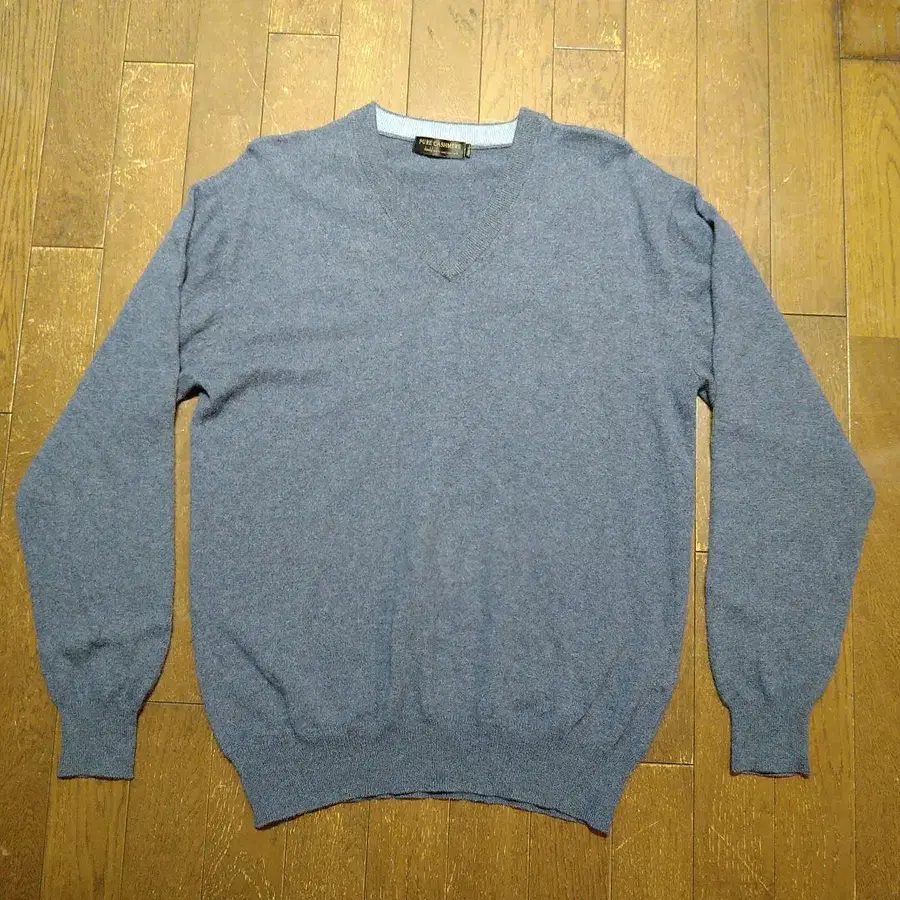 퓨어 캐시미어 100% V넥 니트 블루 계열 L