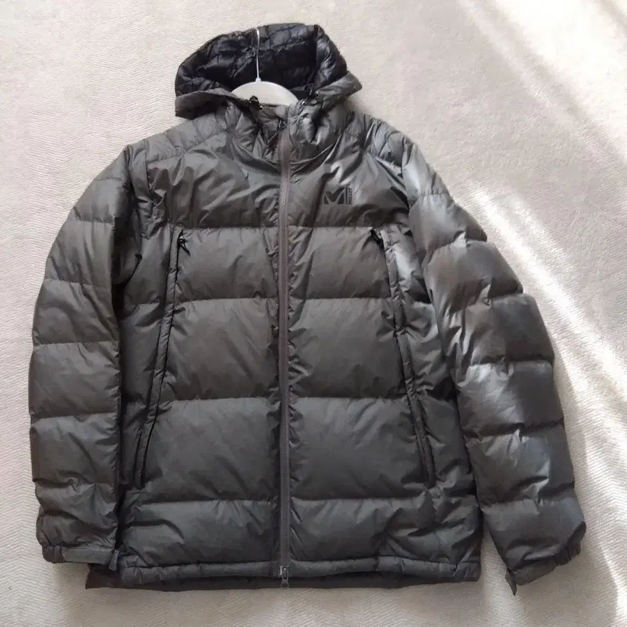 자동 번역되었어요. 원문보기올리브 색상의 후드 부착 다운 자켓, MILLET 브랜드의 더블 지퍼 디자인.