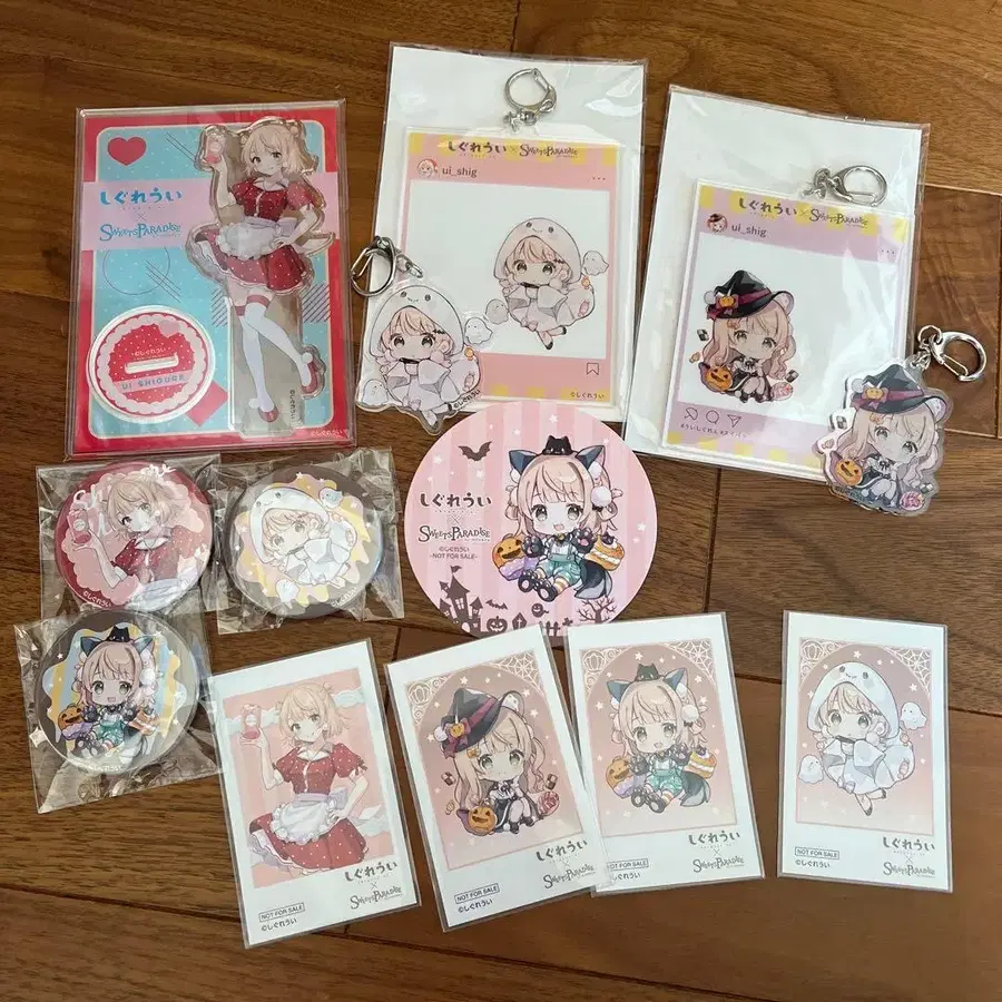 시구레 우이 스위츠 파라다이스 콜라보 아크릴 스탠드 캔 배지 3개 코스터 아크릴 키링 2개 아크릴 사진 키링 2개 폴라로이드 4장