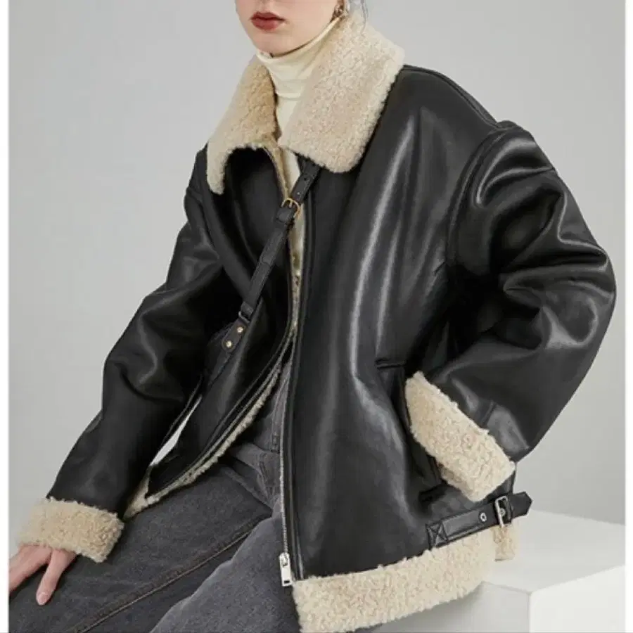 Fano Studios 가죽 보아 집업 자켓