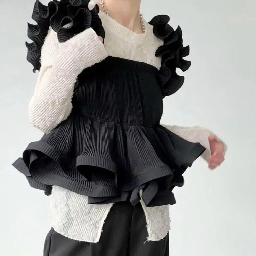 새상품 라슈드 롱베스트 이소재 플리츠 스콧 클럽