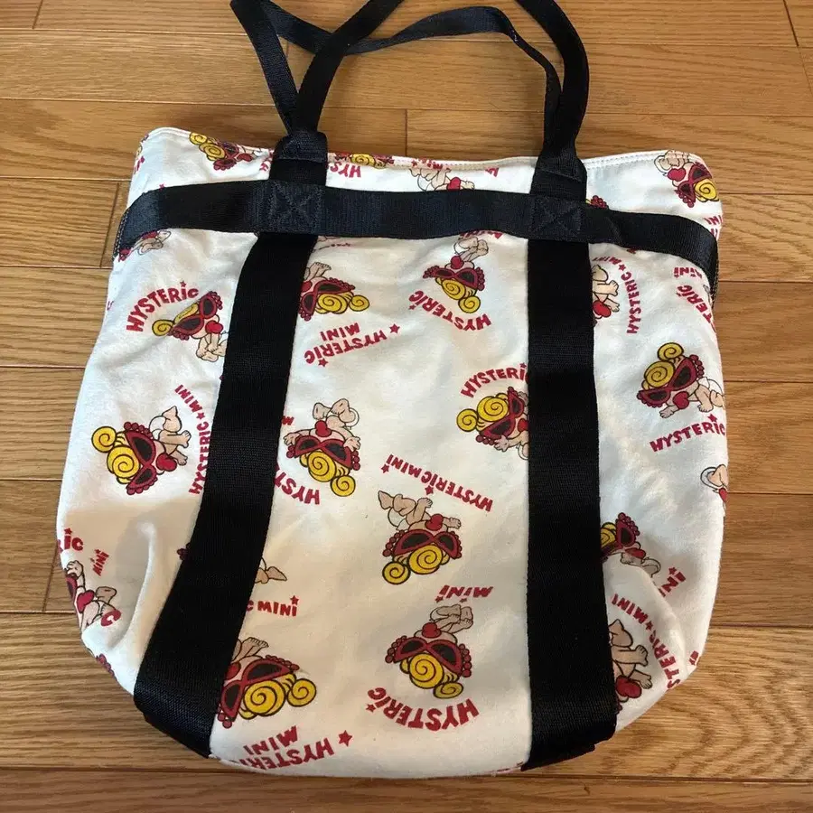 - 디자인: 빨간색 토트백에 블랙 캐릭터 프린트