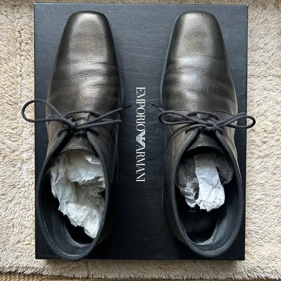 심플하고 세련된 디자인의 EMPORIO ARMANI 블랙 드레스 슈즈. - 브랜드: EMPORIO ARMANI - 색상: 광택 있는 녹색빛이 도는 블랙 1번 사진 색상과 유사함 - 스타일: 드레스 슈즈 - 소재: 가죽 - 밑창 타입: 플랫 방문해 주셔서 감사합니다. 반품 불가 사이즈 - 26cm 본인 사이즈: 25.5cm