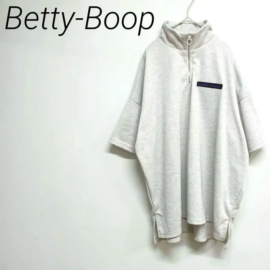 Betty-Boop 하프 지퍼 피케 셔츠 그레이 빅 4L 신축성