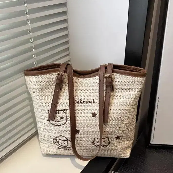 아이보리와 브라운 스트라이프 디자인, A4 사이즈 수납 가능한 데일리 백. - 색상: 아이보리/브라운 - 디자인: 스트라이프/캐릭터 자수 - 내부 포켓: 지퍼 포켓 있음 - 사이즈: A4 사이즈 수납 가능 - 용도: 데일리 백/쇼핑백 방문해 주셔서 감사합니다.