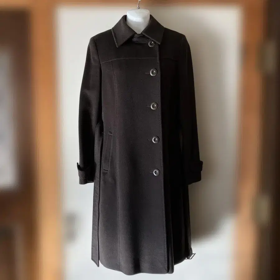 자동 번역되었어요. 원문보기다크 브라운의 심플한 롱 코트, 커프스 디테일로 스타일리시합니다.