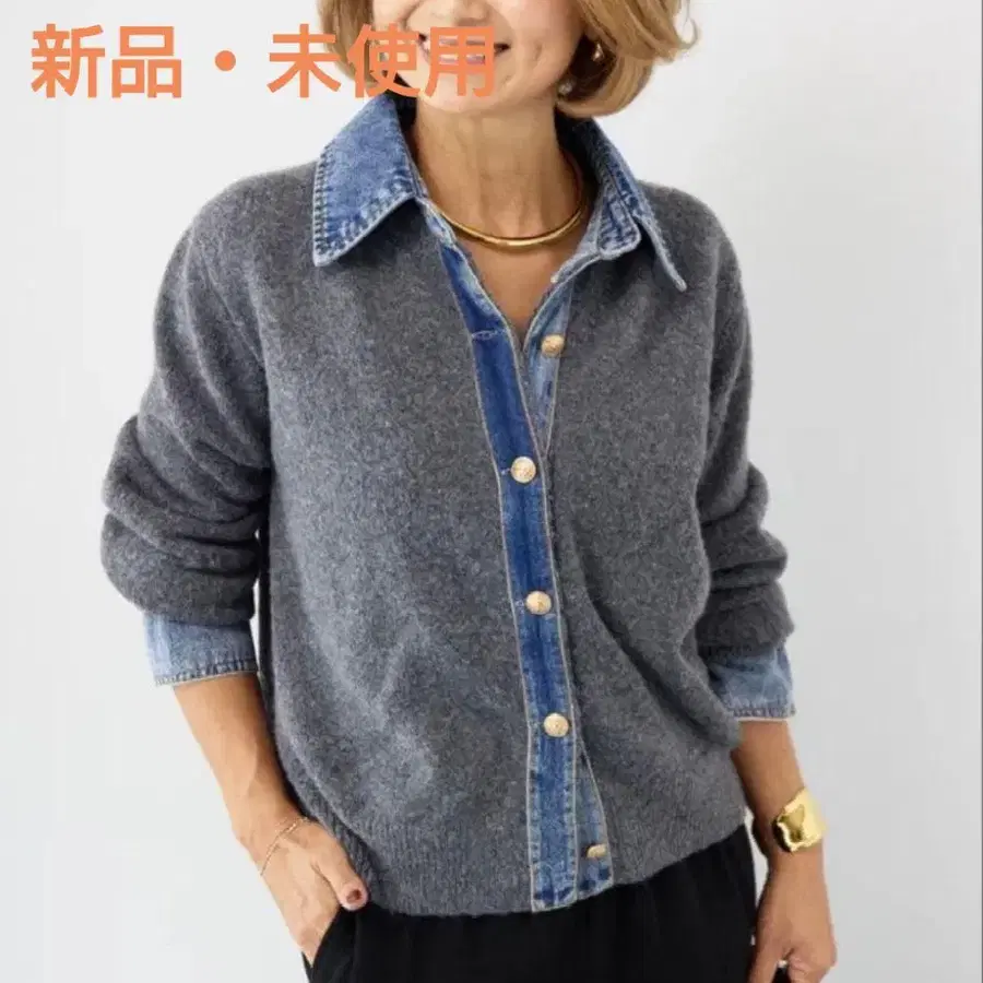 라스오토하의 [ 이 소재 콤비네이션이 매력적인 데님 x 니트 셔츠 ] 입니다.