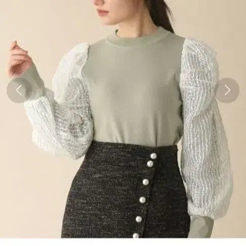 • 미셸 마카롱 레이스 슬리브 니트탑 블랙