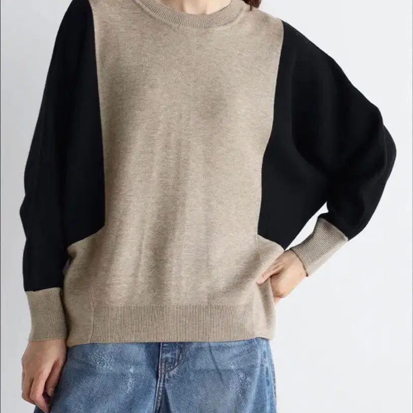 medocoriginal 바이컬러 드롭 숄더 스웨터