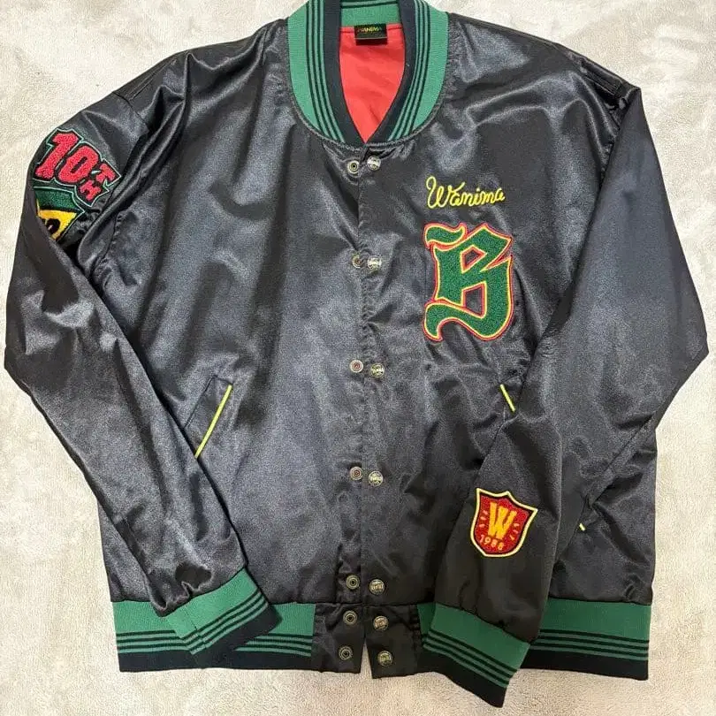 WANIMA 10주년 기념 멤버 한정판 바시티 자켓입니다. 착용 기회가 없어 판매합니다. - 색상: 블랙 - 사이즈: L - 디자인: 바시티 자켓 - 특징: 자수 로고, 컬러 블록 - 소재: 새틴 마감 방문해 주셔서 감사합니다.