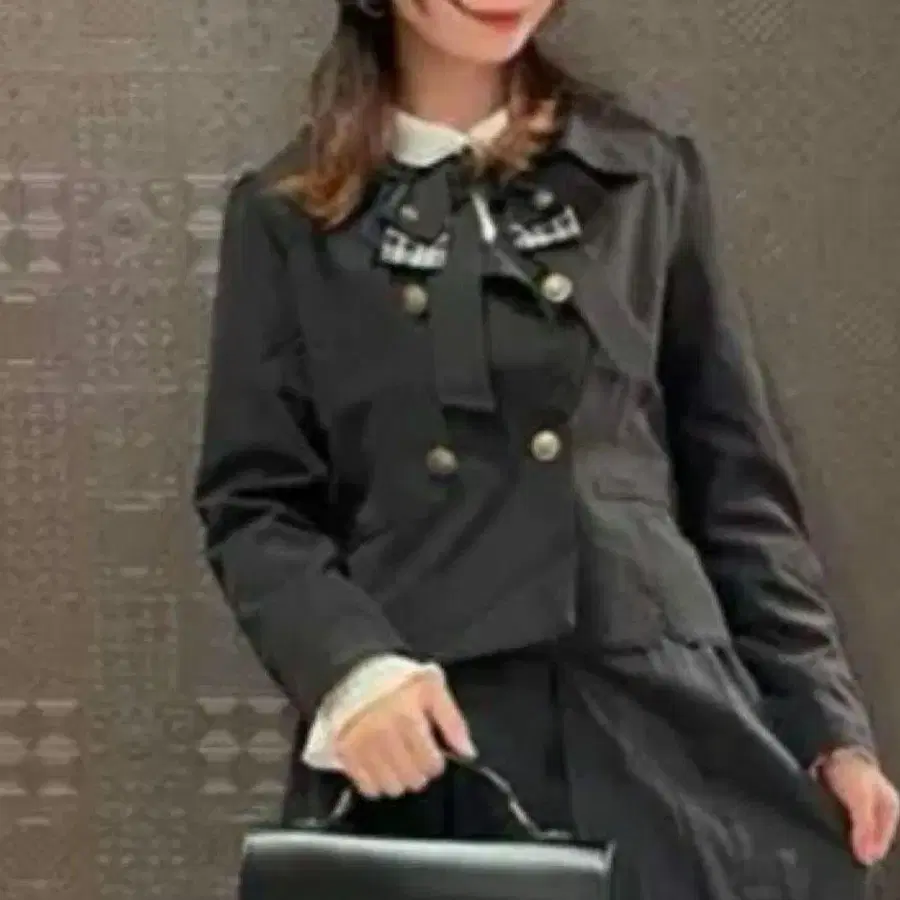걸리시한 둥근 카라와 더블 버튼 사용이 포인트인 자켓입니다. 은은한 레이스 사용으로 레트로 걸리시한 스타일링에 추천합니다. 카라는 버튼으로 탈부착이 가능하며, 제거하면 깔끔한 라운드형 노카라 디자인이 됩니다.