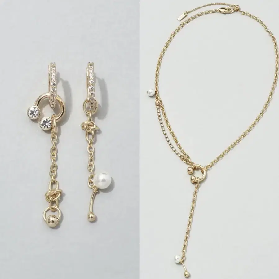 [새상품] GOLDY 바벨 x 펄 참 목걸이 귀걸이 세트