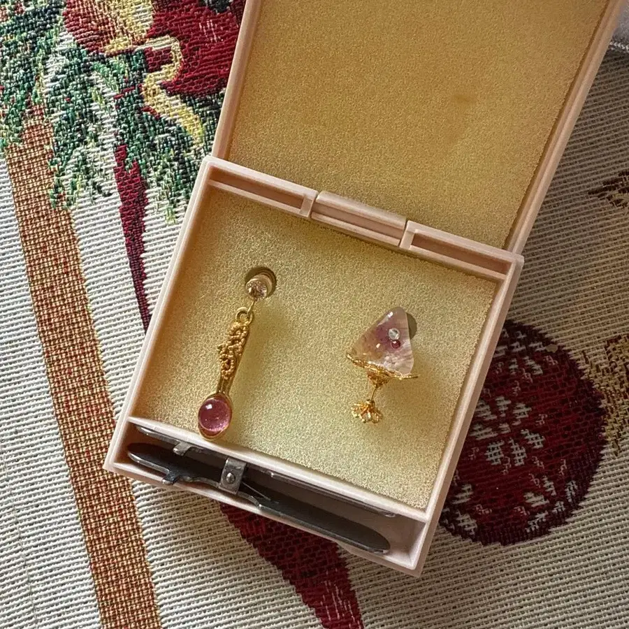 - 디자인: 빙수 모티브 - 소재: 금속과 수지 - 디자인: 빨간색 스톤이 달린 디자인 - 스타일: 캐주얼 - 브랜드: PIARI 방문해 주셔서 감사합니다. 부속품 - 상자