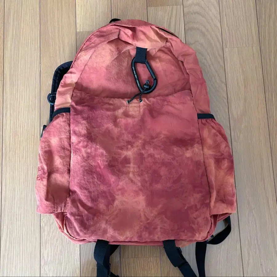한국 브랜드 mmo garden의 스테디셀러 백팩 타이다이 패턴으로 컬러는 sunrise입니다. mmo backpack 085 nylon tiedye 085 - 약 20L / 가로 27 / 세로 42 / 밑단 폭 18 중량 약 235g (카라비너 제외) 1회 사용만
