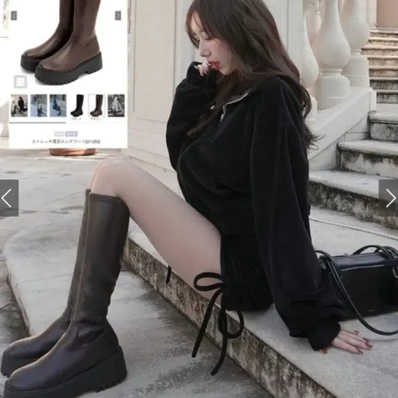 평소 24cm를 신고 있는데 작아서 한 번밖에 신지 않았습니다(´;ω;`) 23cm 또는 23.5cm인 분에게 좋을 것 같습니다. - 색상: 브라운 - 스타일: 롱 부츠 - 밑창 타입: 통굽